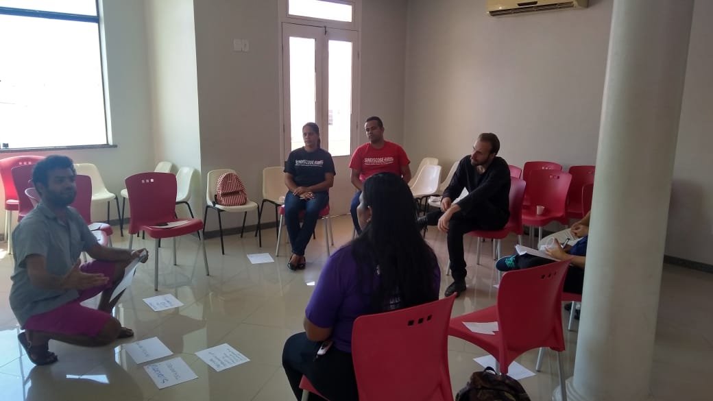 Neste sábado, 19 de janeiro a diretoria do Sindiscose realizou sua primeira formação sindical. O objetivo foi armar a entidade para os desafios que virão neste ano, a atividade começou pela manhã, dedicada a compreensão da importância e da necessidade dos sindicatos, que foi facilitada pelo Economista e Advogado Demétrio Varjão. Com técnicas de dinâmica de grupo, foi feito um resgate do surgimento dos sindicatos no mundo, Brasil e em Sergipe. Logo depois houve um debate de conjuntura com o Professor Mestre e Doutorando pela UFS Alexis de Jesus.