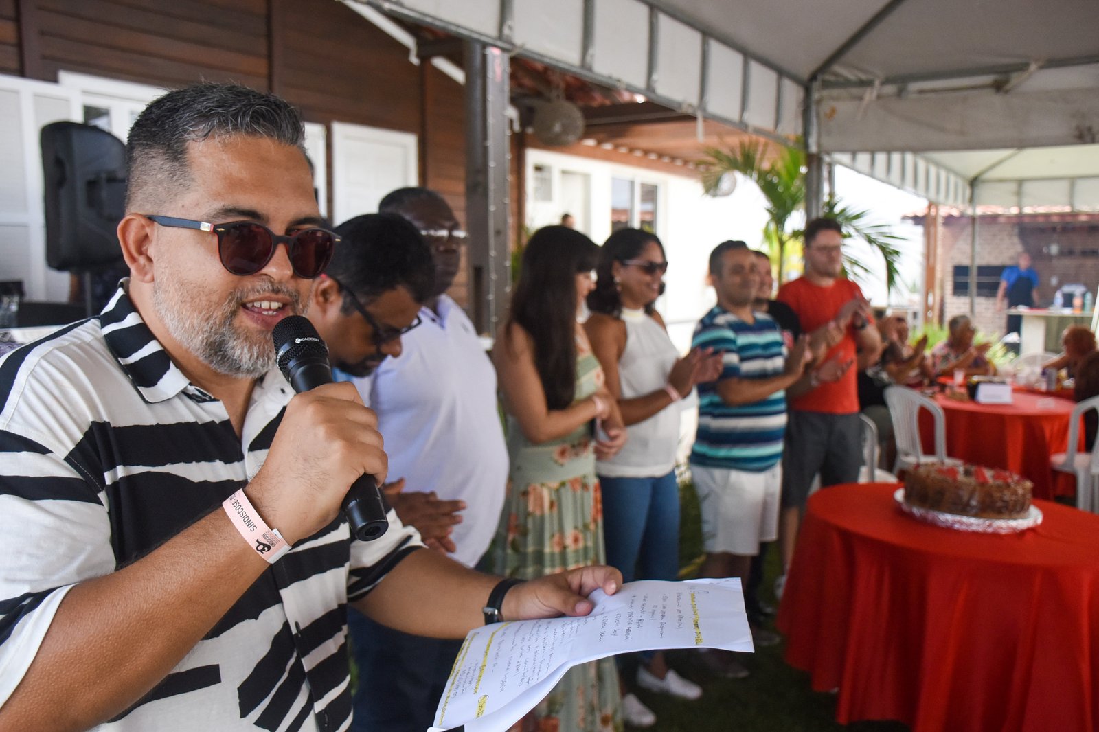 Rua Maria Rezende Machado, nº 976. Bem que poderia ser mais uma comemoração de fim de ano em qualquer casa de festas pela Coroa do Meio, Zona Sul de Aracaju. O sol de novembro temperando a caída da tarde, tira-gosto no talo, barraca de batidas a todo vapor, piscina e pula-pula pra gastar animação e joelho dos pequenos e pequenas, uma aparelhagem do DJ Rafa Aragão chacoalhadora de esqueleto. Bem que poderia mesmo, com amigo secreto e tio do pavê e tudo mais, se as trabalhadoras e trabalhadores em conselhos e ordens de fiscalização não insistissem tanto pela sua organização coletiva no correr das últimas três décadas. Comemorar é, sobretudo, palavra e desordem.