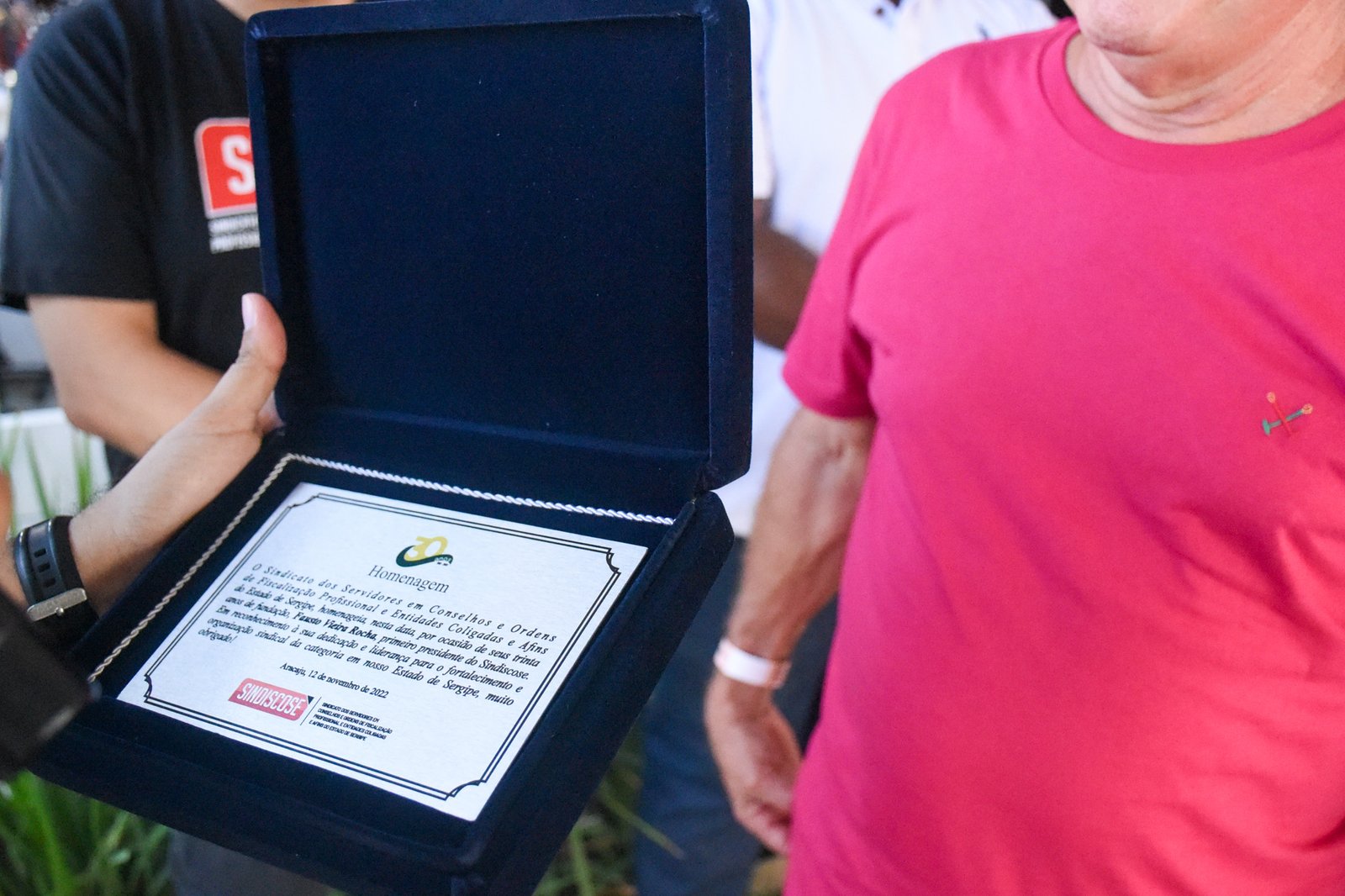 Fausto Vieira Rocha, então fiscal do Conselho Regional de Engenharia e Agronomia (Crea), topou a tarefa de presidir as duas primeiras gestões do Sindiscose nos idos otimistas da década de 90. “Confesso que não queria não, eu já estava muito desgastado do movimento estudantil, mas a gente viu que realmente havia a necessidade e fomos pra batalha. Também ajudamos a organizar a Fenasera – Federação que organiza a categoria em escala nacional – no mesmo ano, e de lá pra cá as disputas sempre foram sempre muito difíceis”, dividiu com seus colegas enquanto recebia a homenagem da gestão da décima Diretoria Executiva do Sindiscose.