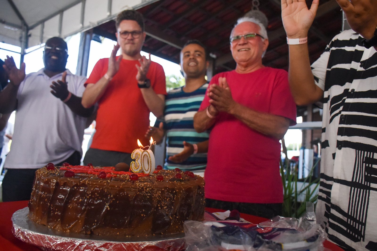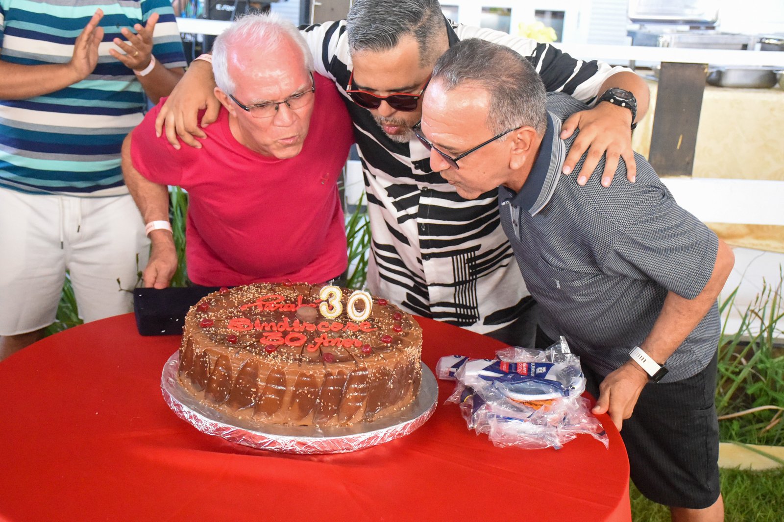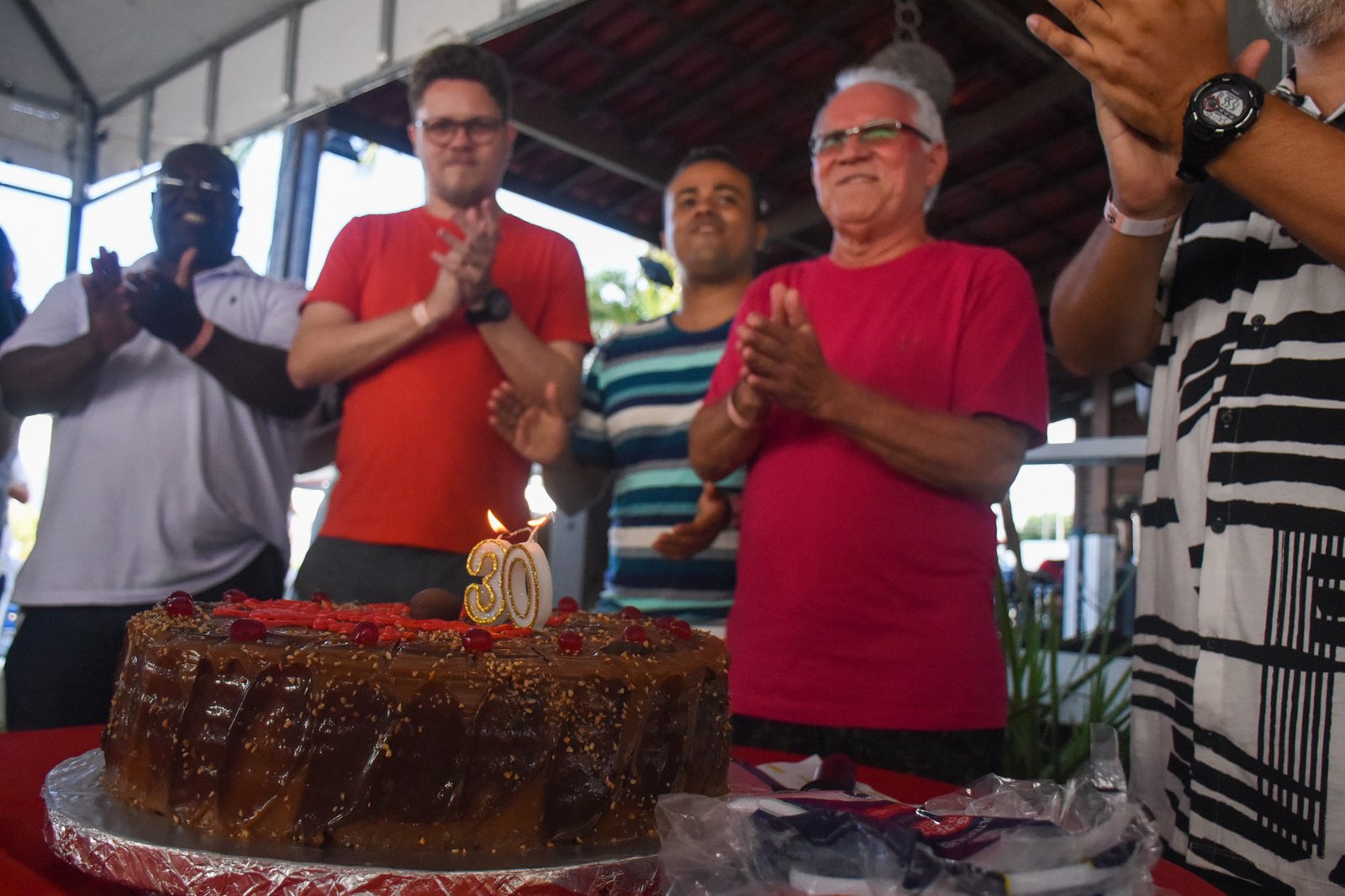 Logo após a falação regimental, foi a hora do parabéns, com direito a “derrama senhor” e outras coisas. O bolo de chocolate com castanhas e doce de leite adoçou a boca dos pequenos e rebateu a demanda média de glicose dos mais velhos. A tarde seguiu com muita suingueira de Edson Joy e os clássicos do axé, forró das antigas e toadas marcantes dos anos 1990 e 2000. Importante ressaltar o clímax com “Tá na hora do Jair”, clássico recente de Juliano Madeirada e Thiago Doidão que embalou a vitória de Luis Inácio Lula da Silva no segundo turno das eleições presidenciais. O hit chegou ao topo da plataforma Spotify em 27 de outubro para nunca mais ir embora.