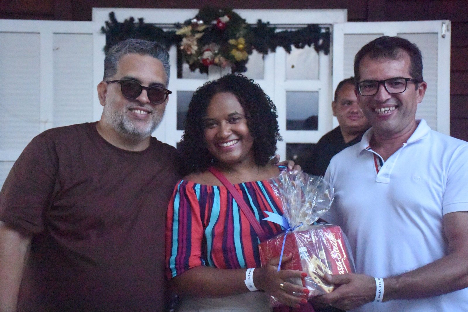 A Diretoria ressaltou a ausência do colega Antônio Oliveira, servidor da OAB-SE e diretor do sindicato, que não esteve presente por motivos de saúde. O colega Leandro Augusto Oliveira, funcionário da OAB-SE, veio comemorar o seu aniversário com a categoria e recebeu a acolhida de todas e todos, além de um agrado da festa. A servidora Clara Lisboa e o advogado Luis Felipe Reis foram apresentados e saudados pelos presentes. Logo após as declarações da Diretoria, foram sorteados uma série de brindes como panetones, espumantes, biscoitos finos, dois vouchers da Confeitaria DoSergipe, uma garrafa de Gin e um PIX de 100 reais.
