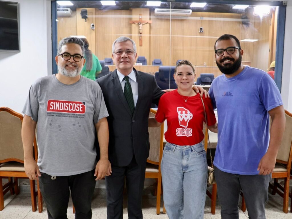 Os Sindicatos dos Servidores em Conselhos e Ordens de Fiscalização Profissional e Entidades Coligadas e Afins dos Estados de Sergipe e Ceará (SINDISCOSE e SINDSCOCE) marcaram presença na Audiência Pública sobre Terceirização, vínculos precários e seus impactos na políticas de saúde, educação e assistência social realizada na Câmara Municipal de Aracaju, no último dia 26, para discutir os graves impactos da terceirização desenfreada no serviço público. O evento, proposto pelo vereador Iran Barbosa, reuniu diversas lideranças sindicais e movimentos sociais para debater como a transferência de gestão para Organizações Sociais (OSs) tem afetado negativamente políticas essenciais de saúde, educação e assistência social, promovendo a precarização dos vínculos trabalhistas e o enfraquecimento do papel do Estado.